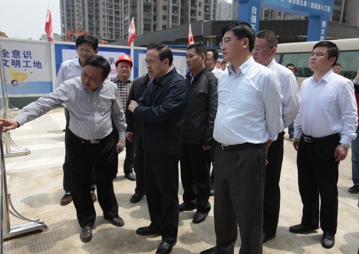 55,武漢市市長唐良智、副市長張光清一行蒞臨博宏建設十升路道排工程項目施工現場檢查指導工作。