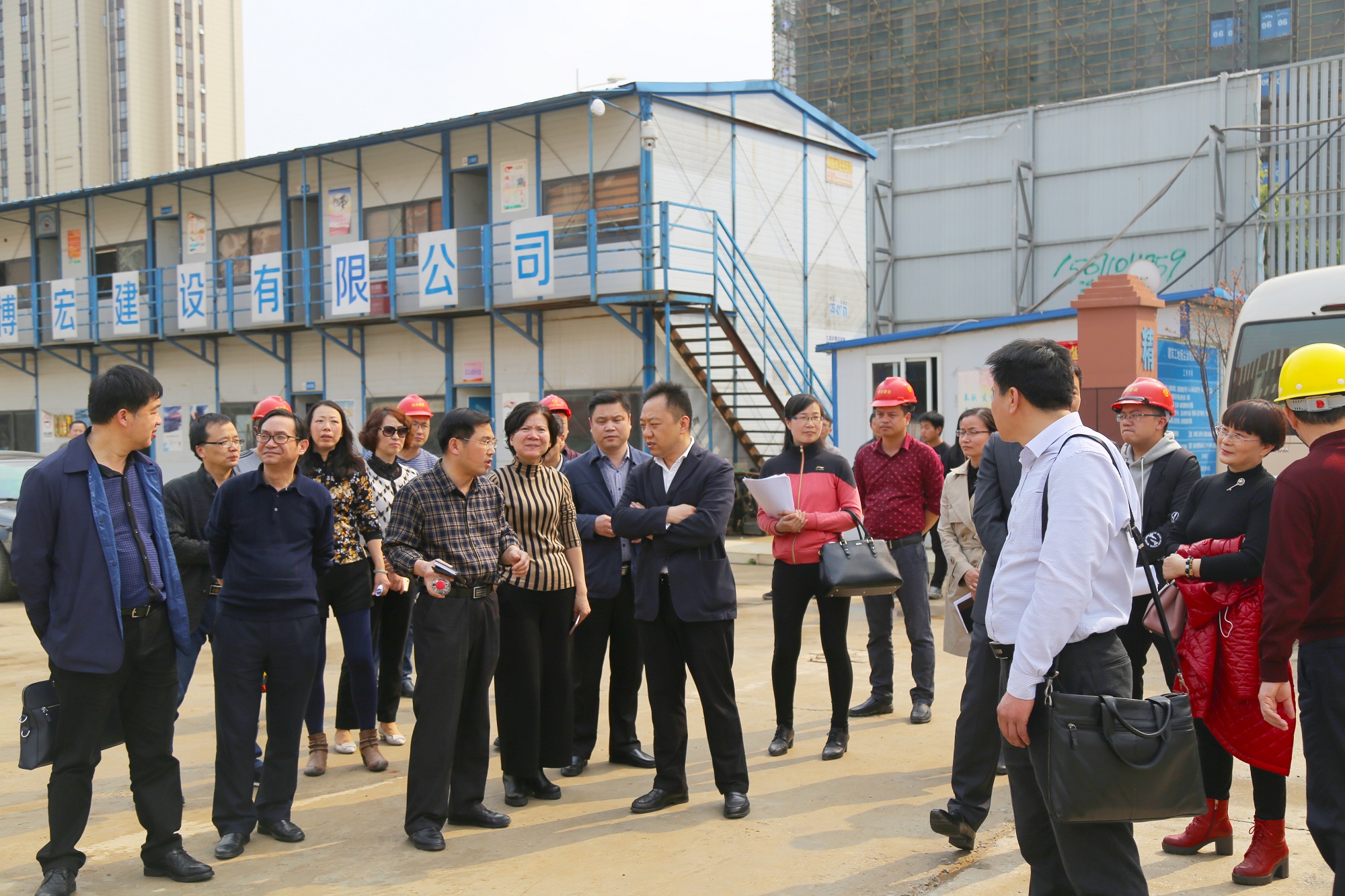 315日下午,漢陽區委副書記兼區長閻磊等一行來到四新北路武漢四新中學建設項目現場開展調研工作,區教育局局長施惠芳、武漢三中校長劉平華、漢陽市政董事長嚴悌文、天創房地產總經理張琴、博宏建設董事長錢濤等陪同調研。