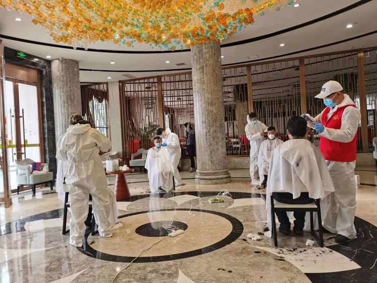 新冠肺炎疫情防控期間,理發成了許多人的難事,尤其是防疫項目建設一線人員,每天奔忙在項目現場,早出晚歸,根本沒有時間考慮發型問題,為解決他們的“發型煩惱”,公司通過志愿者渠道聯絡了四位發型師志愿者,為公司防疫項目建設一線人員義務理發。