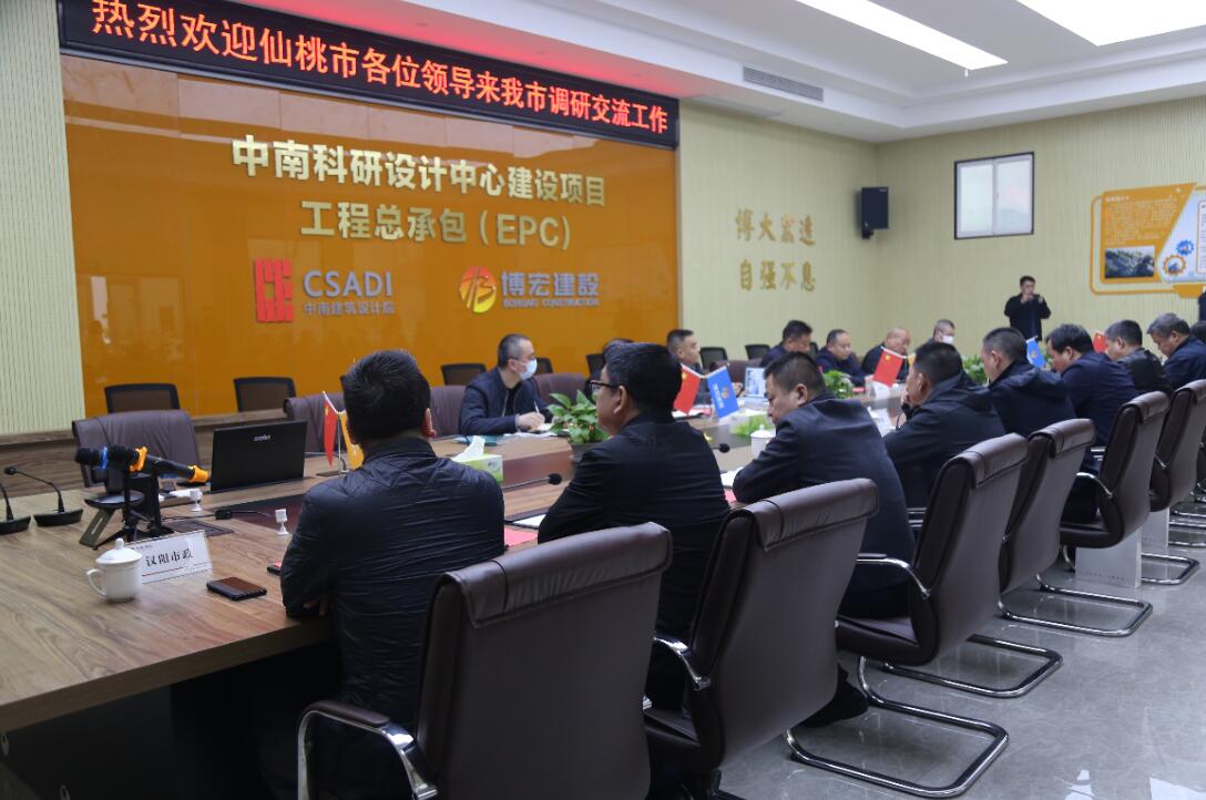 現(xiàn)場(chǎng)調(diào)研結(jié)束后,調(diào)研座談會(huì)在中南科研設(shè)計(jì)中心項(xiàng)目舉行。仙桃市人民政府、仙桃市住建局,與武漢市城建局、漢陽(yáng)區(qū)建設(shè)局、漢陽(yáng)市政等單位代表共同參會(huì)。