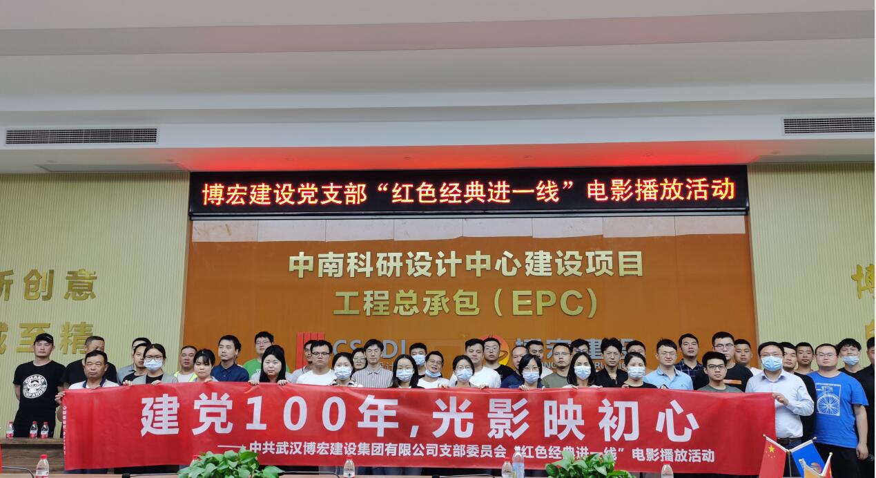 5月7日晚6點,漢陽市政博宏公司黨支部開展“建黨100年,光影映初心”電影播放活動,將紅色電影帶進公司中南科研設計中心項目部,50余位黨員群眾共同觀看“建國三部曲”系列電影之《建軍大業》,一起追憶紅色故事。