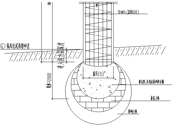 載體與樁身結合處剖面圖