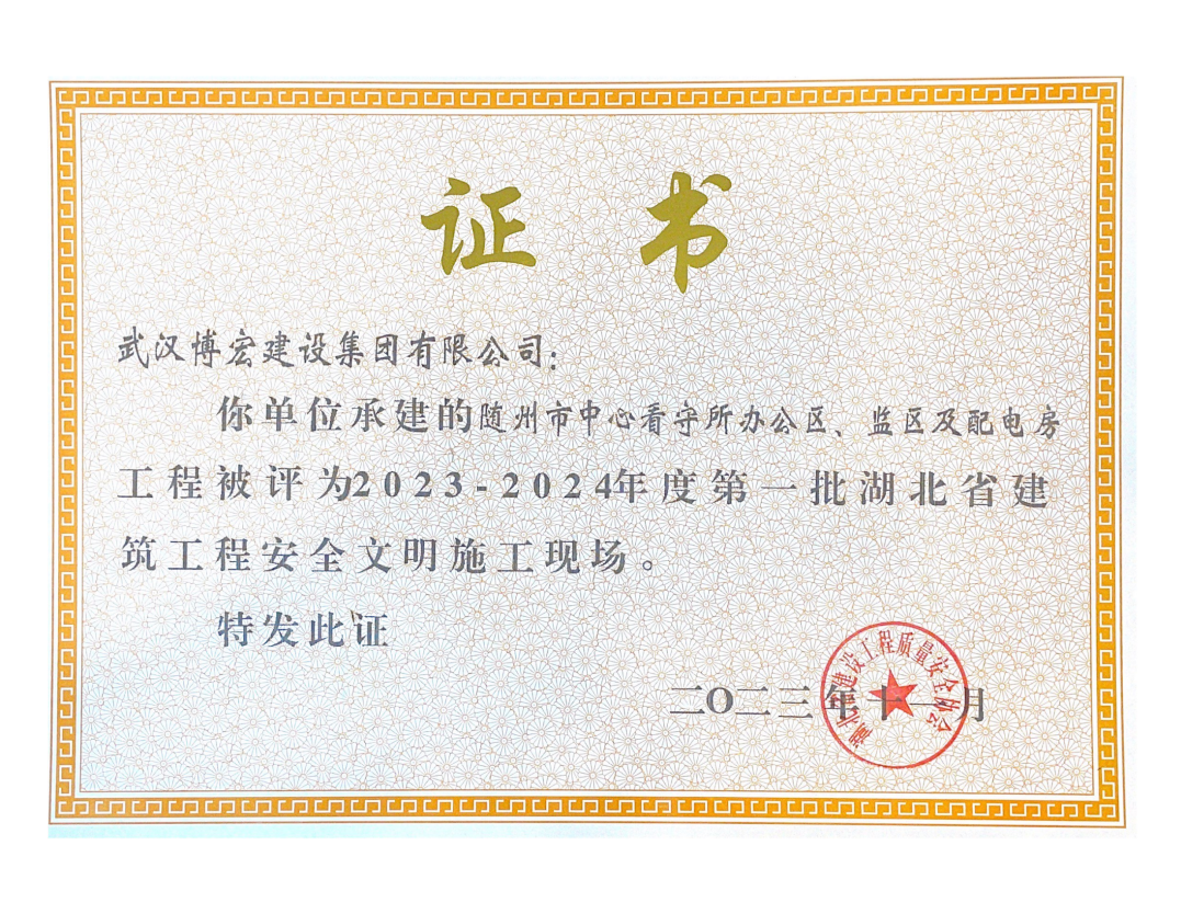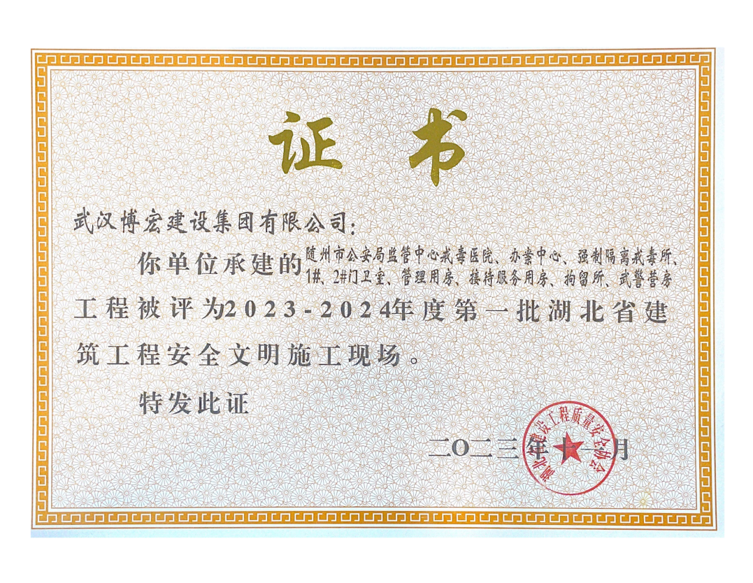 近日,湖北省建設(shè)工程質(zhì)量安全協(xié)會公布了2023-2024年度第一批湖北省建筑工程安全文明施工現(xiàn)場名單,由博宏建設(shè)集團(tuán)承建的隨州市中心看守所辦公區(qū)、監(jiān)區(qū)及配電房;黃金口產(chǎn)業(yè)園商業(yè)設(shè)施、居住、公園綠地建設(shè)項(xiàng)目;新建工業(yè)項(xiàng)目(漢陽市政科研中心)(EPC)等8項(xiàng)工程獲評湖北省建筑工程安全文明施工現(xiàn)場。