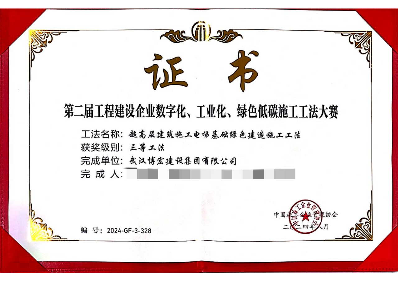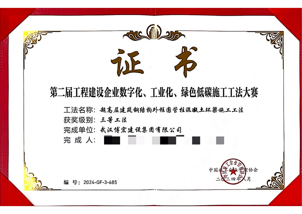 近日,中國施工企業管理協會公布第二屆工程建設企業數字化、工業化、綠色低碳施工工法大賽、第四屆工程建造微創新技術大賽結果,博宏建設集團喜獲2項三等工法、1項優勝成果。