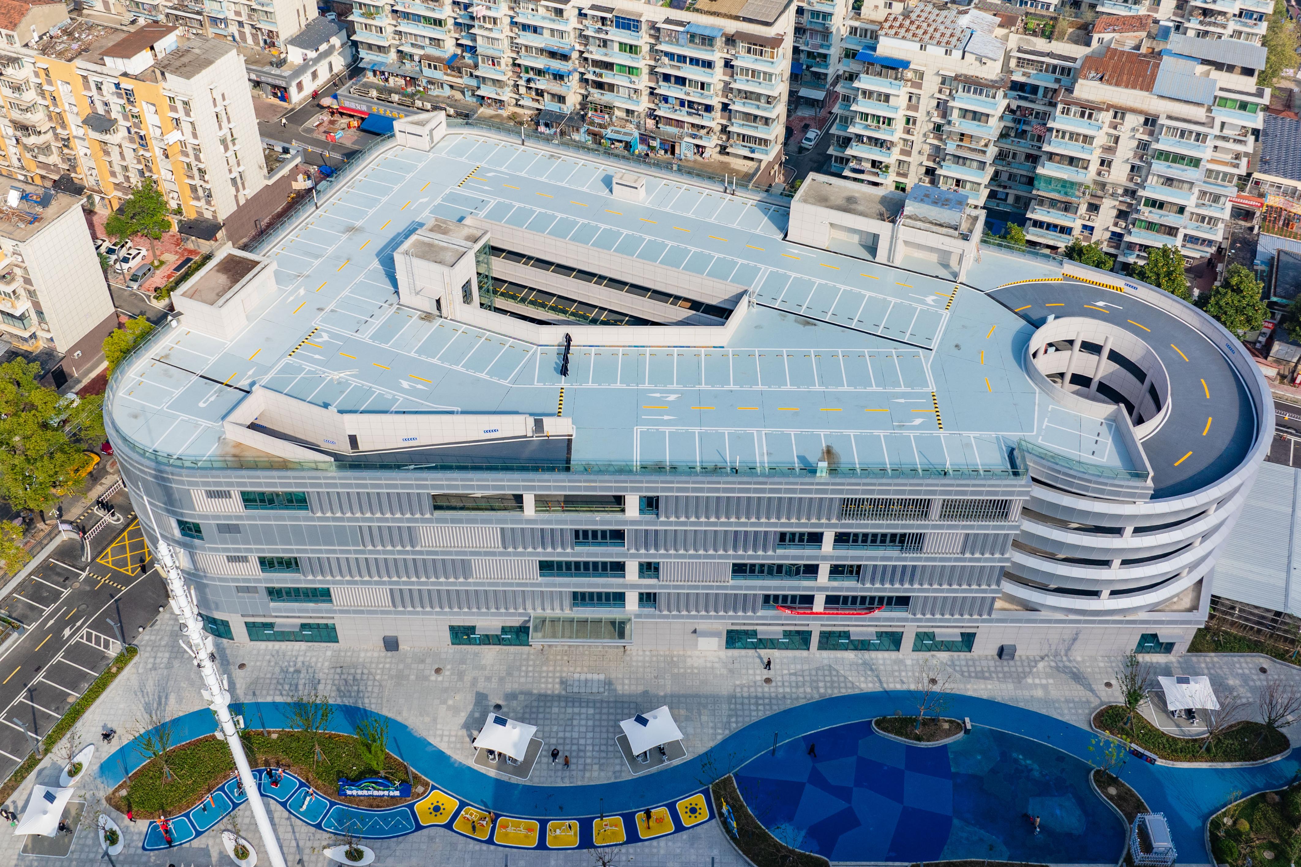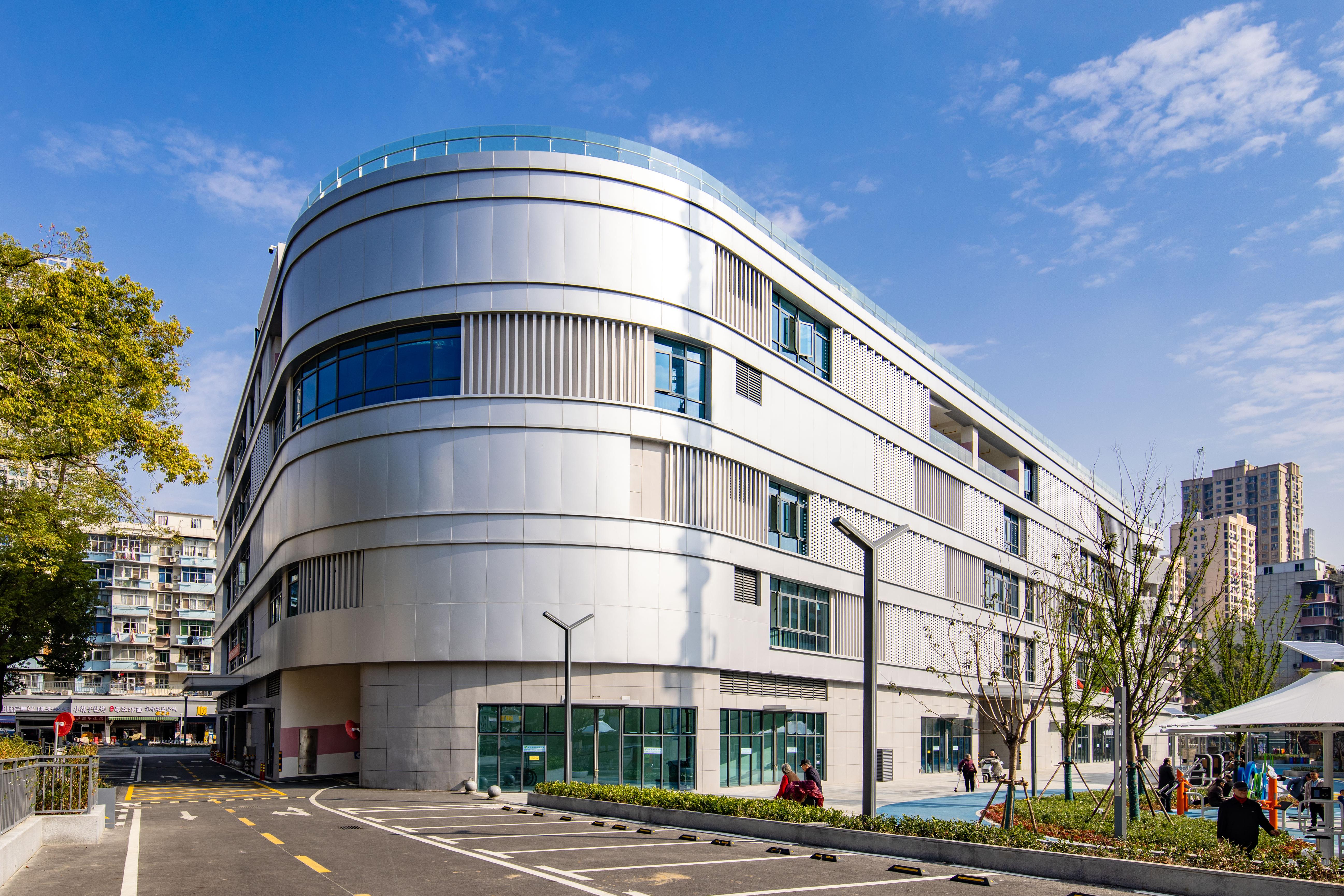 這棟別具一格的5層銀灰色綜合停車樓,不僅新增了450個停車位,還是居民的開放式“薈鄰中心”,樓外廣場設有“一老一少”休閑健身娛樂設施,籃球場、環形跑道、藍色沙池一應俱全,樓內1至2層設有1300平米的社區文化活動室、康養中心、應急中心、圖書館等公共服務設施,后期還將圍繞社區打造全方位的便民生活圈。